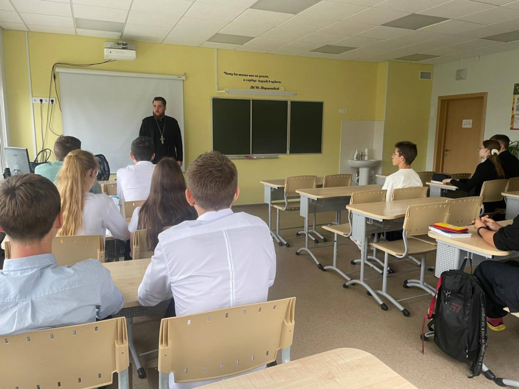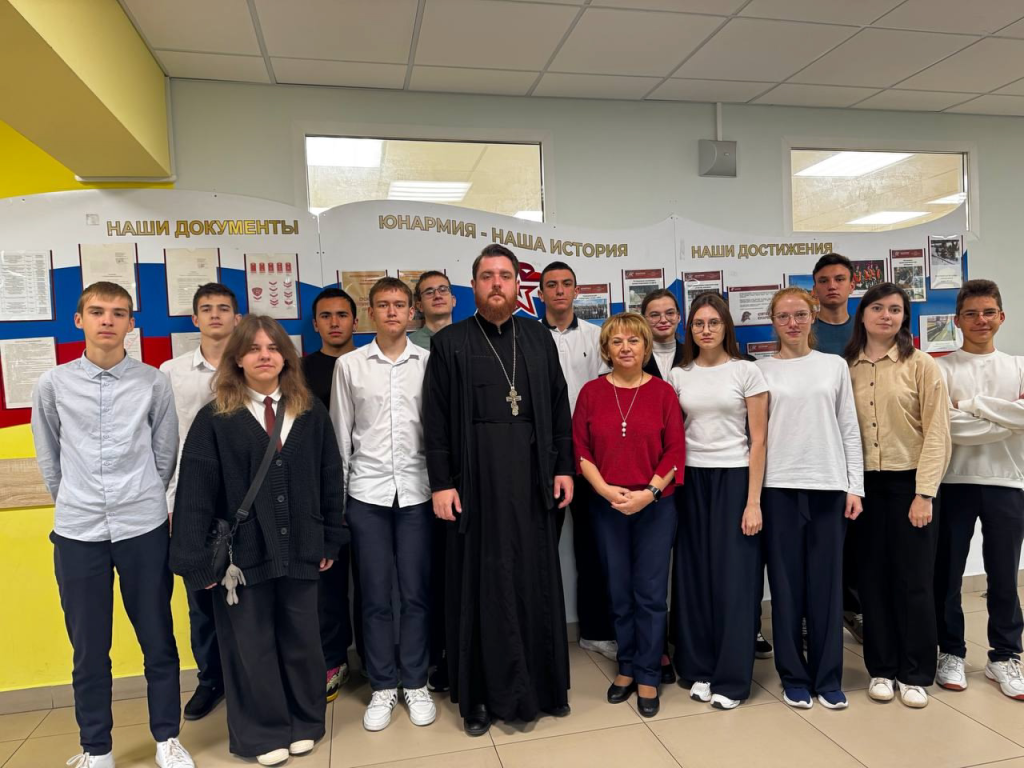 26 сентября настоятель Ильинского храма с. Ильинское г.о. Домодедово иерей Владимир Косецкий, в рамках муниципальной программы «Диалог со священником», встретился с десятиклассниками МАОУ Ильинская СОШ им.полного кавалера ордена Славы И.И. Сидорова с. Ильинское. Темой встречи была «Счастье». Школьники активно участвовали в беседе, задавали интересующие их вопросы и делились своими мыслями.